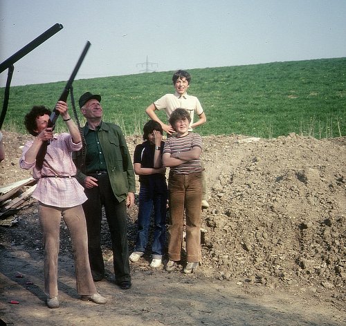 Auch Margot Boose versucht sich unter Aufsicht von Heinrich Wilkening im Hutschießen!