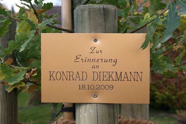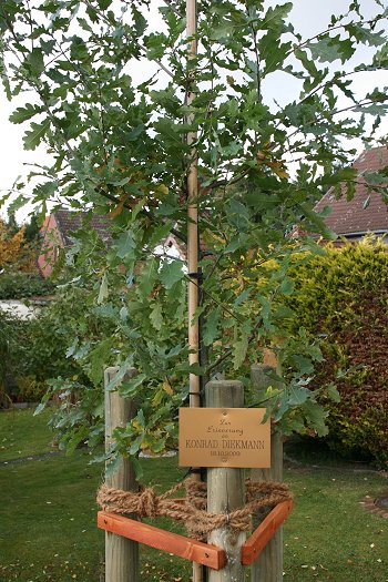 Der Heimatverein Höfingen pflanzt mit Unterstützung der Stadt in den nächsten Tagen am Reesebrink in Texas eine Eiche. Dieser Eiche steht symbolisch als Dank an unser Ehrenmitglied Konrad Diekmann.Am 18.10.2009 um 14:00 wollen wir diese Eiche allen Interessierten vorstellen. Wir werden eine Widmung anbringen und damit unserem Gründungsmitglied Konrad Diekmann gedenken. Im Anschluss finden wir bei einem Getränk Zeit zum Klönen.Wir freuen uns auf Euer Kommen. Euer Heimatverein |