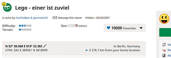 Zum ersten Mal in der Geocaching-Geschichte hat ein Cache 10.000 FPs erreicht!