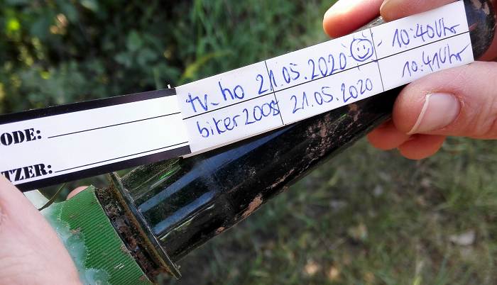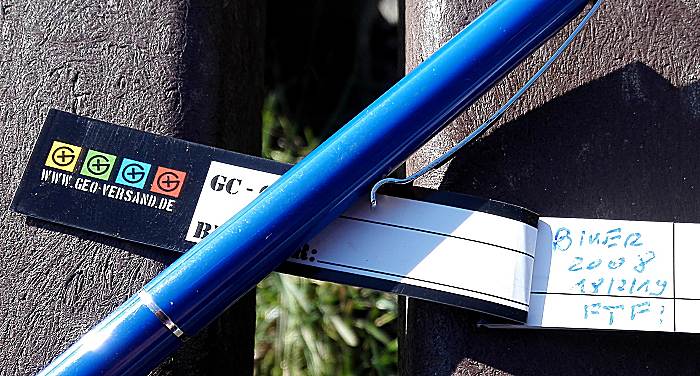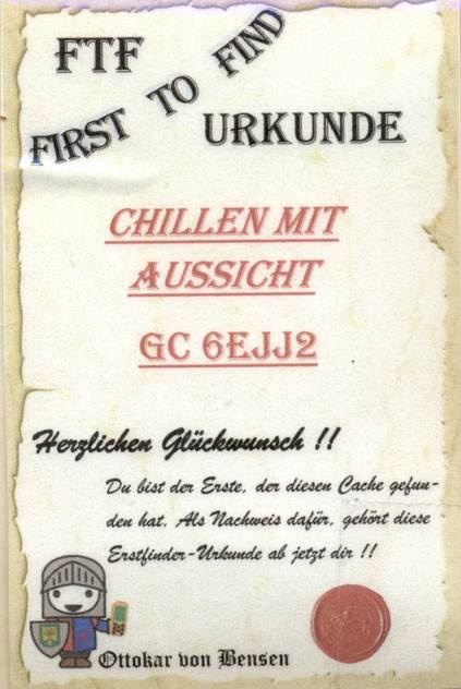 FTF! Eine neue Runde in der Homezone! Und blauer Himmel! Da musste ich unbedingt mit dem Bike die Dosen einsammeln! Unterwegs habe ich noch jede Menge Cacher getroffen. Viele Grüße! Wie schon in der Lachemer Flur waren die Dosen punktgenau und fair versteckt. An diesem schönen Platz habe ich eine blaue Schleife für die Runde gelassen.
