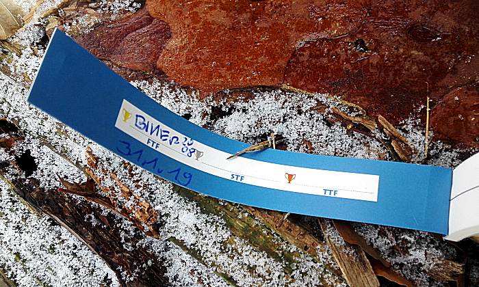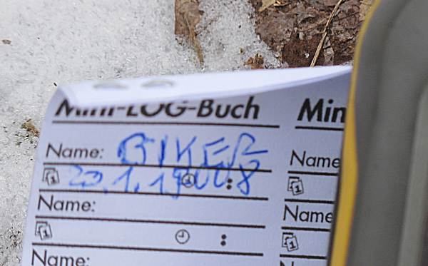 Das schöne Rätsel habe ich nach dem Frühstück gelöst. Dann habe ich bei Matscha48 angerufen. 'Willst du dir einen FTF holen?' Er wollte! Bei echtem Mistwetter und teilweise glatten Straßen sind wir hoch nach Langenfeld gefahren. Wie schon fast erwartet stand das Auto von kett@ho auf dem Parkplatz. Nach einer glatten Wanderung durch den Regen haben wir kati@ho und kett@ho, die ein paar Minuten Vorsprung hatten, an den Koordinaten getroffen. Gemeinsam haben wir noch einige Zeit gesucht, bis kati@ho den richtigen Blickwinkel hatte. Was für ein Spaß! DFDC! (26.01.19)