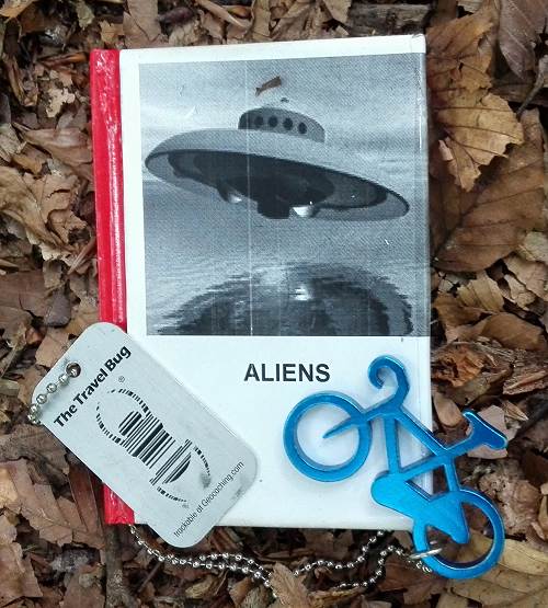 Ein Hammercache!! Hier ist alles toll, vom Listing über die Rätsel bis zu den Bastelarbeiten! Natürlich haben wir eine blaue Schleife in das UFO gelegt!