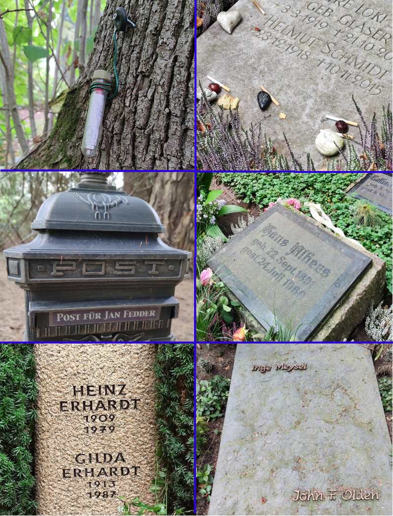 Vielen der dort beigesetzten Prominenten ist ein Geocache gewidmet. So z.B. Helmut Schmidt, Heinz Erhardt, Jan Fedder, Tony Sheridan, Hans Albers und Roger Willemsen.