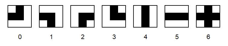 Bei jeder der 25 Aufgaben unten ist die Lösung zu ermitteln. Man nehme dann den Rest bei einer Divsion durch 7. Dieser Rest ergibt dann eine der sieben Figuren.