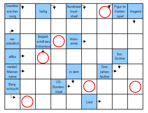 Die Buchstaben in den roten Kreisen ergeben - in die richtige Reihenfolge gebracht - den Namen einer Stadt.
