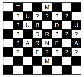 1) Welche Wörter ergeben sich, wenn die Plättchen auf den Feldern mit dem Fragezeichen gelegen haben?