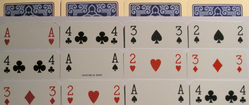 Noch eine Anmerkung für Nicht-Kartenspieler: Natürlich sind Karo und Herz beide rot und Pik und Kreuz beide schwarz. Für Kartenspieler sind dies aber vier verschiedene Farben.