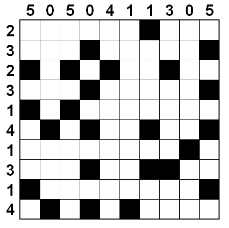 waagerecht und senkrecht (nicht diagonal) in ein weißes Feld eingetragen werden. Kein Stern darf in der direkten Nachbarschaft eines anderen Sternes stehen, auch nicht diagonal. Die Zahlen am Diagramm benennen die Anzahl der
