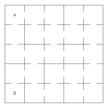 Wie viele verschiedene Wege gibt es, um von A nach B zu kommen? Auf jedem Weg darf jeder Raum maximal einmal betreten werden.