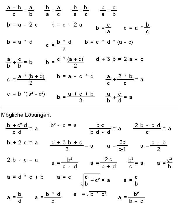 Die aufgeführten Formeln müssen nach a umgestellt werden. Sie sollten jede Zielformel streichen. Eine Formel bleibt übrig!
