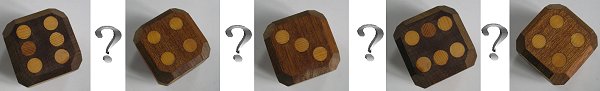 Bei einem Würfelspiel werden zunächst die Würfel 1 und 2 geworfen. Es ist die Aufgabe des Spielers die beiden Zahlen mit Hilfe der vier Grundrechenarten zu verknüpfen. Jetzt wird Würfel 3 geworfen. Der Spieler muss zwischen Würfel 2 und Würfel 3 ein weiteres Rechenzeichen setzen. So geht es weiter bis zum Wurf des fünften Würfels und dem Setzen des vierten Rechenzeichens. Jede der vier Grundrechenarten darf dabei nur einmal benutzt werden. Falls es bei der Division einen Rest geben sollte, so wird dieser gestrichen.