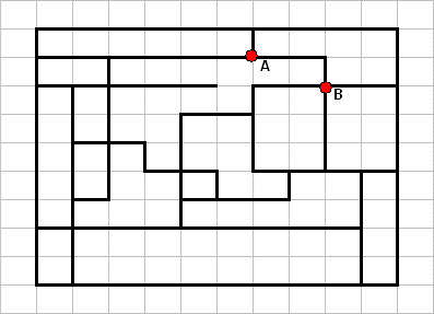 Nach einem Abend im Biergarten (A) möchten Tina und Jens nach Hause gehen. Es gibt zwei gleich lange Wege. Sie gehen in eine Richtung und schauen unterwegs bei einem Freund (B) vorbei. Auch von dort gibt es wieder zwei gleich lange Wege zu ihrem Haus. Die beiden Wege haben kein Stück gemeinsam. Tina und Jens wohnen nicht an einer Einmündung. Wo wohnen sie? Gesucht sind die Koordinaten, wobei der Wegpunkt links unten die Koordinaten (0,0) hat. Zusatz: Es soll immer der kürzeste Weg gewählt werden.