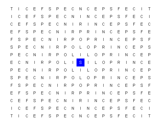 Wie oftmal läßt sich von der Mitte S nach den 4 Ecken t, t, t, t die Inschrift SILO PRINCEPS FECIT lesen?