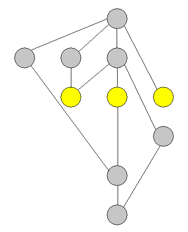 Sie müssen in jeden Kreis eine der zehn Ziffern schreiben. Es müssen alle zehn Ziffern benutzt werden. 'Kleinere' Ziffern stehen unter 'größeren' Ziffern. Was aber 'kleiner' und 'größer' in dieser Aufgabe bedeutet wird nicht angegeben. Die Bedeutung der Geraden ist ebenfalls nicht angegeben. Welche dreistellige Zahl ergibt sich aus den Ziffern in den gelben Feldern?