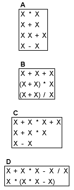In den zwei bis vier Ausdrücken der einzelnen Kästchen ist für jedes X eine Ziffer einzusetzen. Innerhalb eines Kästchens muss jede Ziffer von 1 bis 9 genau einmal erscheinen. In jedem Kästchen soll die Summe der Werte der einzelnen Ausdrücke möglichst groß sein. Die Gesamtlösung ist die Summe der zwölf Werte.