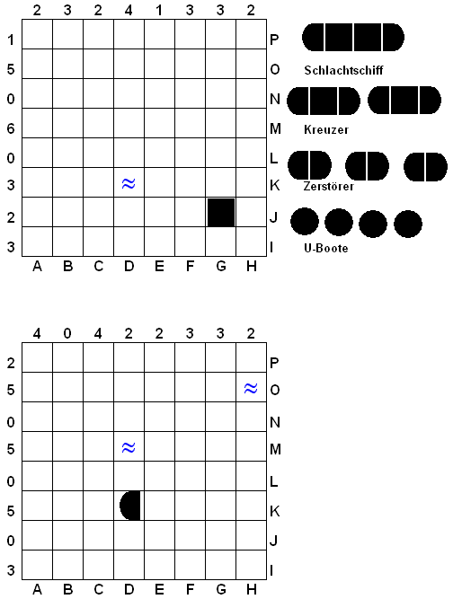 Schiffen besetzten Quadrate in der jeweiligen Reihe oder Spalte. Die restlichen Felder sind