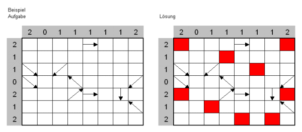 Jeder Pfeil zeigt dabei auf mindestens eins der gesuchten Objekte. Gleichfalls wird jedes U-Boot