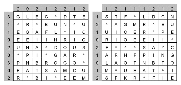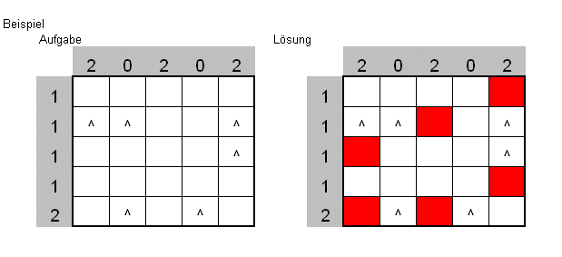 | Bei jeder Krone soll ein Wachmann stehen, und zwar entweder direkt daneben, darüber oder darunter, aber nicht diagonal dazu. Zwei Wächter dürfen nicht auf benachbarten Feldern stehen - dies gilt auch für diagonal angrenzende Felder. Die Zahlen am Rand bestimmen die Anzahl der Wachmänner in der jeweiligen Zeile bzw. Spalte. Wo müssen also die Wächter postiert werden? Wenn sie die Buchstaben der Lösungsfelder der Reihe nach verbinden, erhalten Sie ein Lösungswort. |