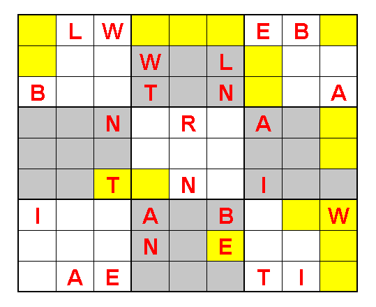 Die Lösung ergibt sich aus den zeilenweise gelesenen gelben Feldern von links oben nach rechts.