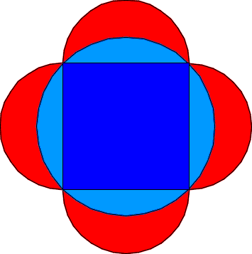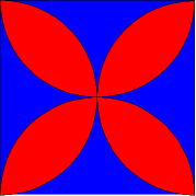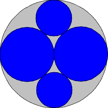 Aus einer kreisförmigen Scheibe werden vier Kreise ausgeschnitten, so daß zwei gleichgroße Kreise jeweils den Rand berühren und die anderen beiden Kreise maximalen Durchmesser haben. Wieviel Prozent der ursprünglichen Fläche fallen als Verschnitt an?