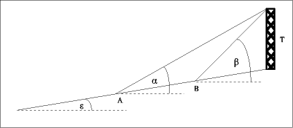 peilt man von zwei Punkten A und B der Straße an und mißt die Höhenwinkel
