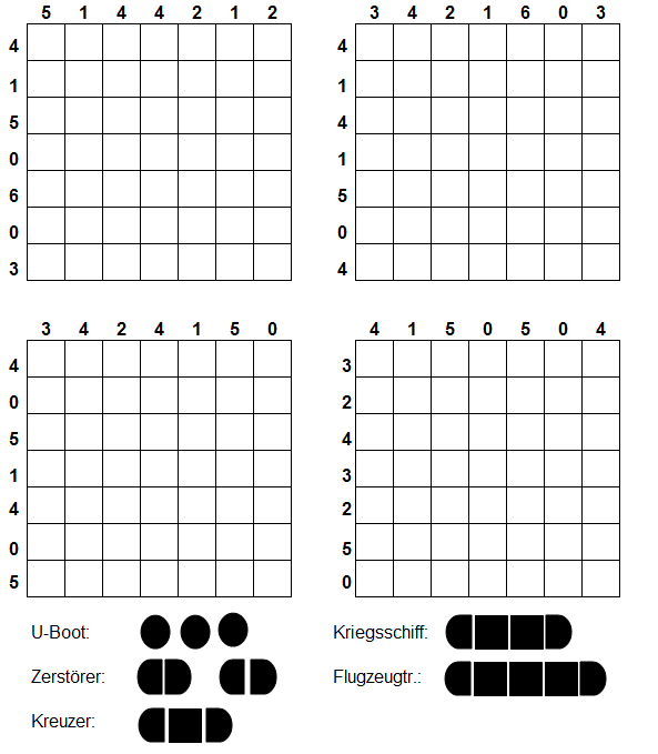 Schiffen besetzten Quadrate in der jeweiligen Reihe oder Spalte. Die restlichen Felder sind