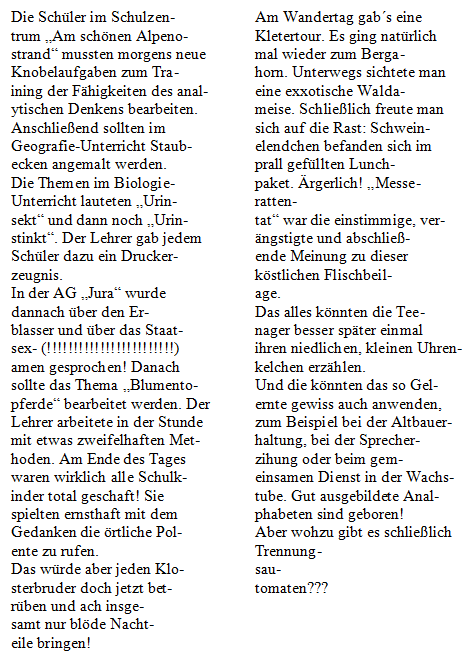 Der Text zeichnet sich durch einige unsinnige Trennungen aus. Außerdem befinden sich im Text neun Rechtschreibfehler.