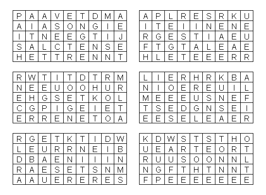 In jedem Kästchen bleiben fünf Buchstaben übrig. Sie ergeben das Lösungwort!