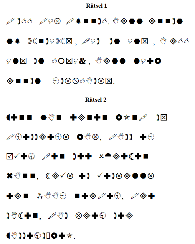 Gleiche Symbole stehen für gleiche Buchstaben. Für jedes Rätsel gibt es einen eigenen Code.