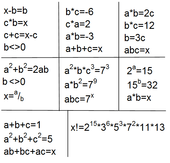 In jeder der acht Aufgaben wird ein Wert für x gesucht!