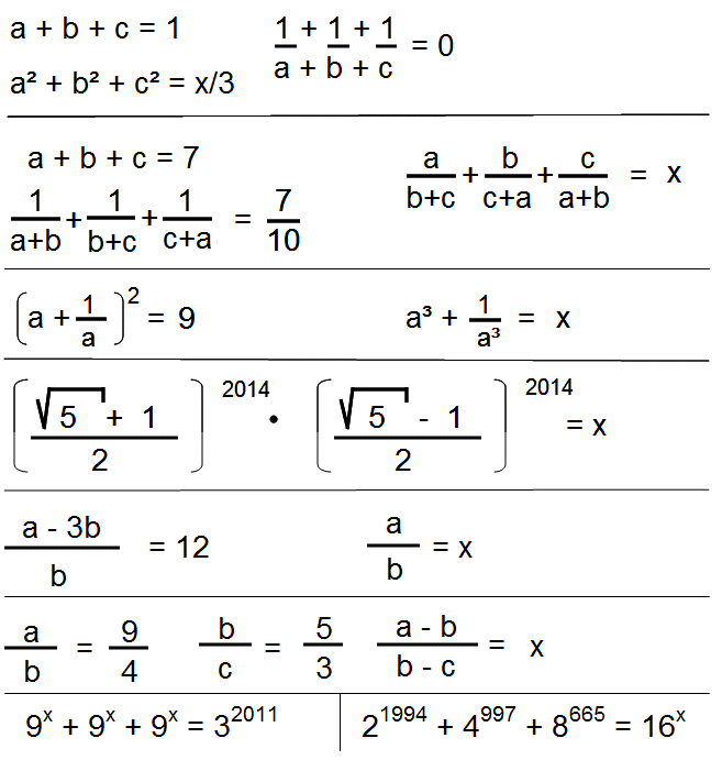 In jeder der acht Aufgaben wird ein Wert für x gesucht!