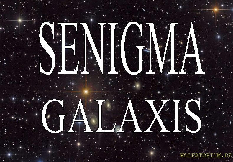 Sie müssen den Cache 'SENIGMA - GALAXIS' finden. Um die Cache-Koordinaten herauszubekommen ist es nötig, sich auf Reise durch die Milchstraße zu begeben. An ## Stationen müssen Aufgaben gelöst werden. Um die jeweils nächste Station zu finden, müssen Sie ein kleines Rätsel lösen und das Wort in die URL hoefingen.net/senigmagala/[loesung].htm einsetzen. Achtung! Viele Browser haben die unangenehme Eigenschaft URLs automatisch zu korrigieren, wenn die Schreibweise dem Namen einer vorhandenen Datei ähnlich ist. Für die Koordinaten benötigt man die korrekte Schreibweise! Man achte auf die Adresszeile. Soweit die Bilder nicht von mir oder von Freunden sind, stammen sie von wikipedia. Ich habe in diesen Fällen die Lizenz angegeben. |