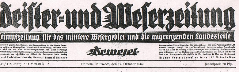 Bad Münder. Am Morgen des 16. Oktober 1962 will sich der Nebel nicht lichten. Die Temperaturen schwanken an diesem Herbsttag zwischen 7,5 und 12,7 Grad. Im Weserbergland nieselt es zeitweise. Die Sonne lässt sich nur 12 Minuten lang blicken. Ralf Schulte aus Pötzen, damals sechs Jahre alt, besucht an diesem trüben Dienstag seinen Onkel in Welliehausen. Das schlechte Wetter ist ihm bis heute in Erinnerung geblieben: 'Es war ein Tag, an dem man besser im Haus bleibt.'