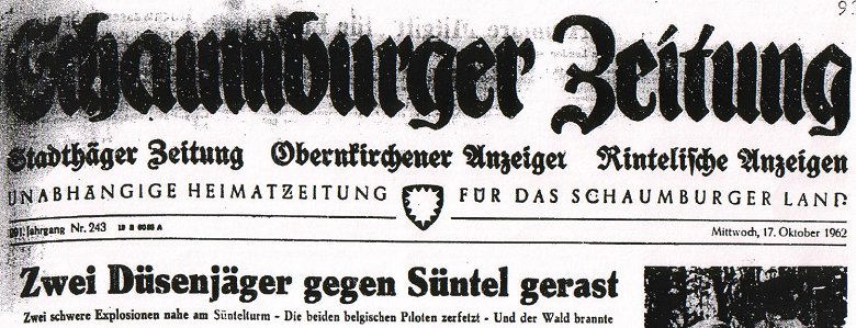Zeugen berichten der Dewezet, was sie gesehen und gehört haben. Am 17. Oktober 1962 heißt es: 'Drei Waldarbeiter und ein Forstaufseher, die ungefähr 200 Meter von der Unfallstelle entfernt waren, hörten nach lautem Motorenlärm nur plötzlich den Knall eines Aufschlages in dem stillen Wald. Im Nebel, der fast den ganzen Tag über Bäume und Felsen des Süntel-Gipfels in einen dichten grauen Schleier hüllte, sahen sie nur, wie dicke Bäume in Sekundenschnelle weggefegt wurden. Nach einem zweiten ohrenbetäubenden Krachen warfen sie sich entsetzt hinter Felsen. Ein Wanderer, der sich etwa hundert Meter von dem Absturzort entfernt aufhielt, wurde mit Erde und Tannennadeln überschüttet und erlitt einen Nervenschock.'