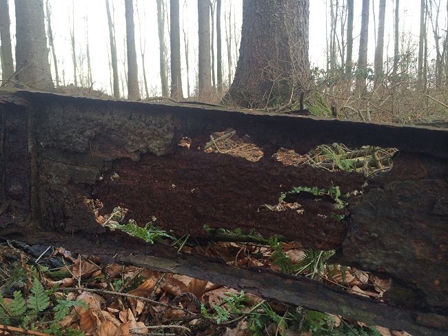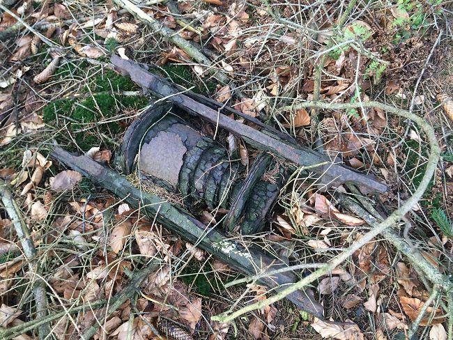Das Wrack findet man in der Nähe der Bergschmiede, wenn man auf dem Helenenweg Richtung Klein Süntel geht.