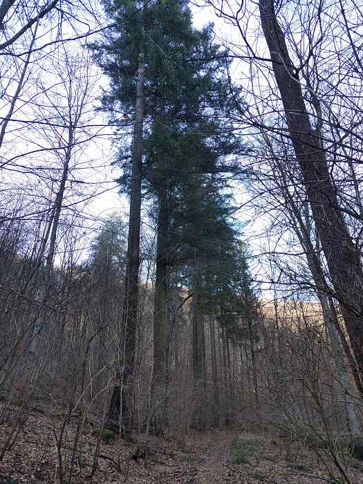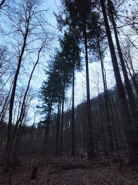 Eigentlich zieht mich ja nichts mehr in den West-Süntel. Hier wurden geschätzt 90 Prozent der Wege zurückgebaut. Aber so wie es aussieht kann man zumindest den Weg von der Baxmannbaude zur Blutbachquelle noch legal gehen. Und ich wollte nach sehr langer Zeit unbedingt mal wieder zu den Giganten im Totental. Dies sind zumindest nach meiner Meinung die höchsten Bäume im Süntel. Vor zehn Jahren war es wohl im Gespräch die Bäume zu fällen.