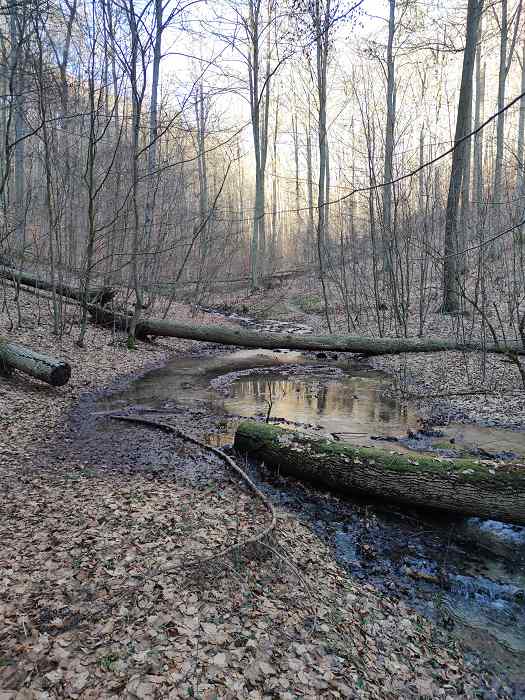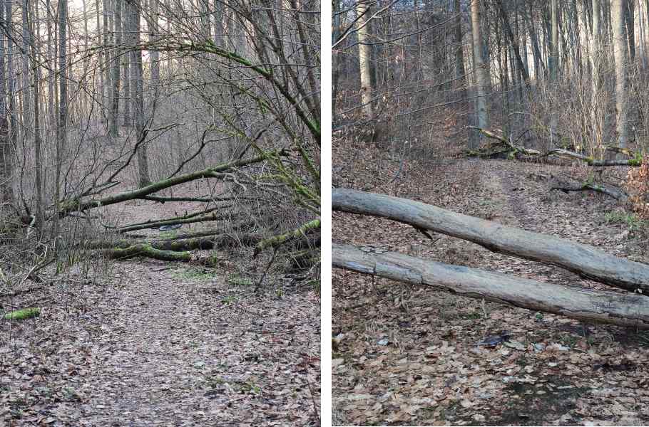 Und so machte ich mich heute (25.02.2026) mit meinem Enkel und den MTBs auf den Weg. Von der Pappmühle kommend ging es ins Totental. Der Weg wurde immer schmaler. Mehrfach mussten wir über umgestürzte Bäume klettern. Für Kinderwagen ist der Weg sicherlich nicht geeignet.