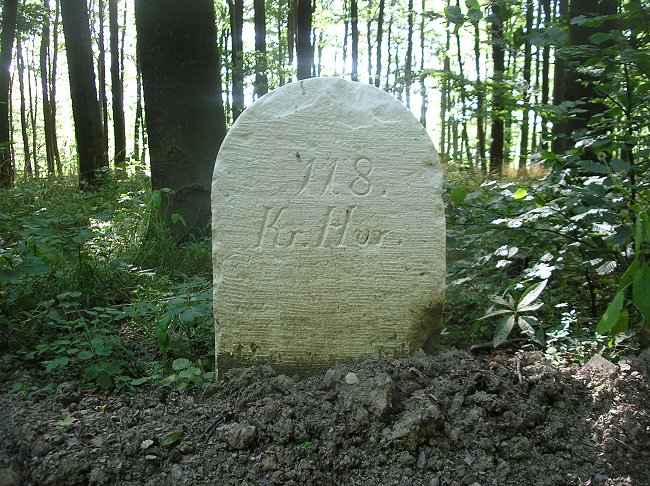 Weg stößt, entdeckt er in die Sandsteine eingemeißelt die geheimnisvollen 'Kr. H.' oder 'Kf. H.'.