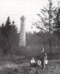 nahegelegenen Brüchen stammen und dort bearbeitet wurden. Andere Materialien (Sand, Kies, Zement usw.) wurden mit Pferdewagen von Münder herangeschafft. 25 Meter ist der Turm hoch und der Innenraum hat einen Durchmesser von 2,40 m, in dem eine Wendeltreppe aus 95 Stein- und 12 Eisenstufen hinauf zur Plattform führt. Unten beträgt die Mauerstärke 1,45 m und oben 0,85 m.