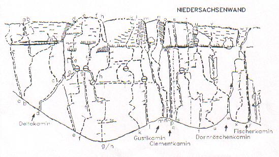 Die landschaftlich schönste, höchste und alpinste Felswand des Weserberglands. Sie liegt am Bergsporn östlich des Blutbachtales. [..] Das Gestein weist in den verschiedenen Höhenlagen sehr unterschiedliche Beschaffenheit auf und fordert vom Kletterer weit mehr als am Ith Erfahrung und ständige Sorgfalt. Deshalb ist es unübertroffen gut geeignet zur Vorbereitung auf Kletterrouten im kalkalpinen und dolomitischen Hochgebirge. In und unter der Wand ist das Tragen eines Steinschlaghelmes unbedingt ratsam.