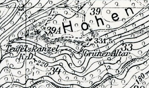 Auf der alten Landkarte von 1955 ist die Teufelskanzel an der Stelle der Hirschkuppe eingezeichnet!