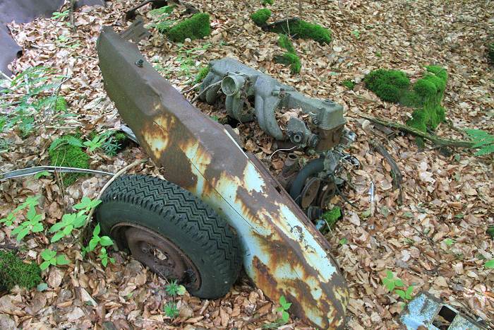 Am Zielpunkt angekommen fanden wir interessante Details (Kohlereste, Abraumhalden, diverse Metallteile). Aber den exakten Ort des Stolleneingangs konnten wir nicht finden. Hier ist nach der langen Zeit wohl alles zusammengebrochen. Auch von der Hütte, die sich in der Nähe des Stolleneingangs befunden hat, war keine Spur zu entdecken. Die Rest des alten Opel, die wir in der Nähe gefunden haben, dürften aus einer späteren Zeit stammen. Wie auch immer, es war in jedem Fall ein interessanter Spaziergang.