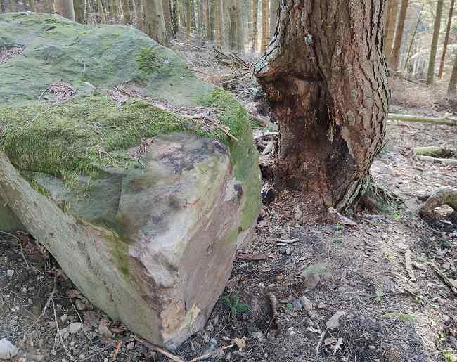Dieser ungewöhnliche Baum muss wohl mal um den Stein herumgewachsen sein.
