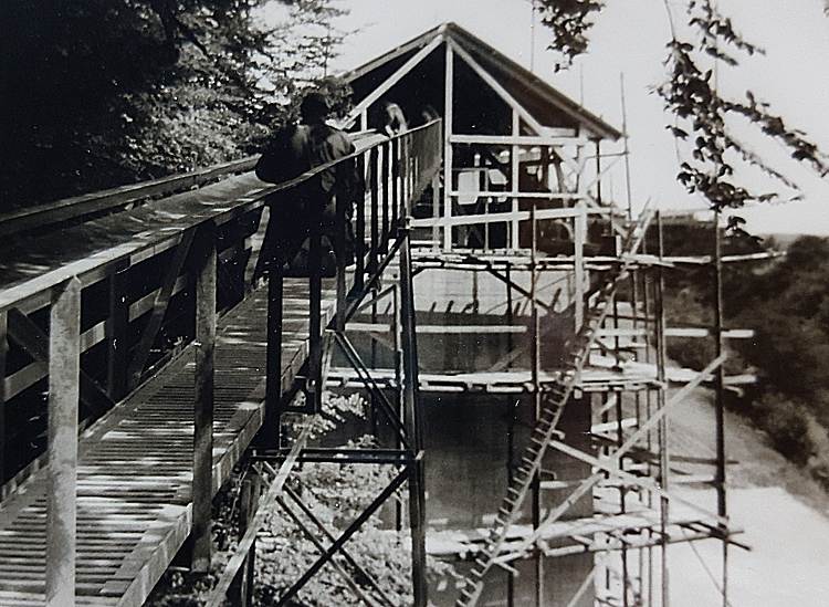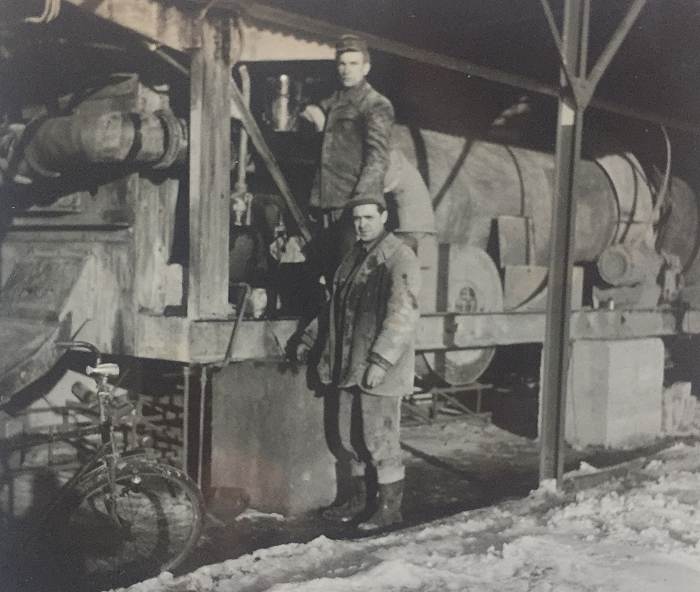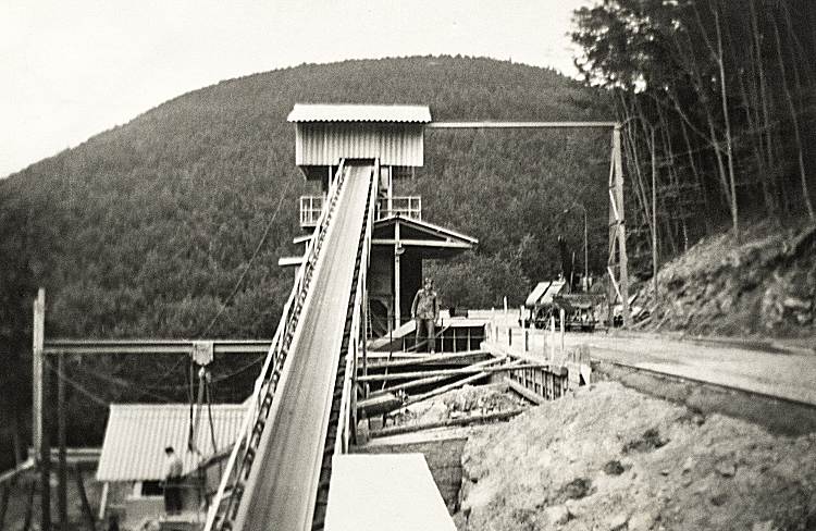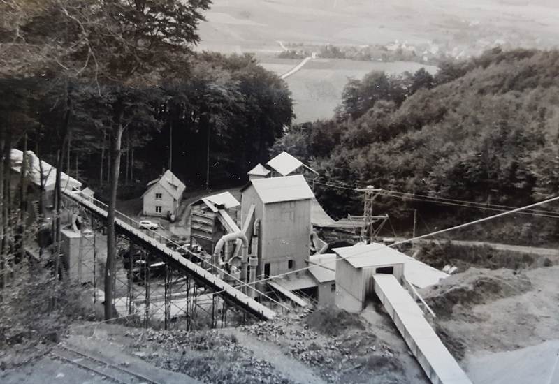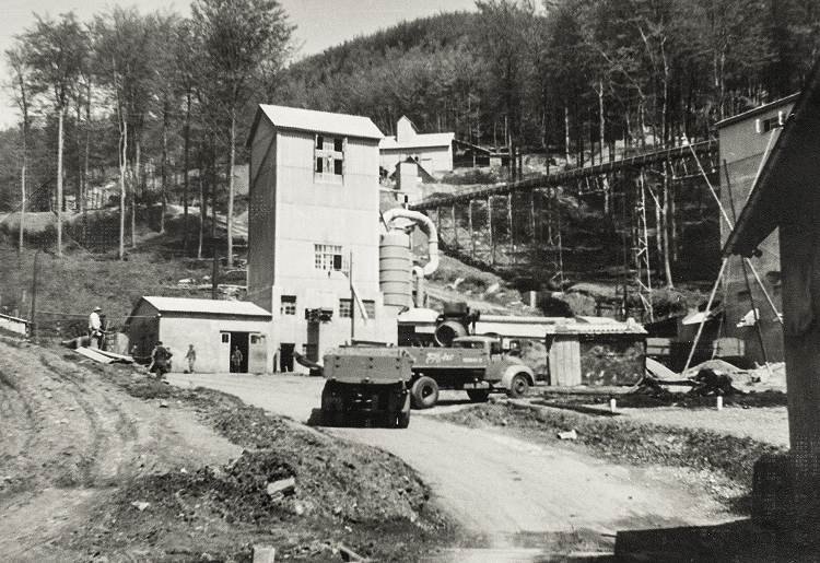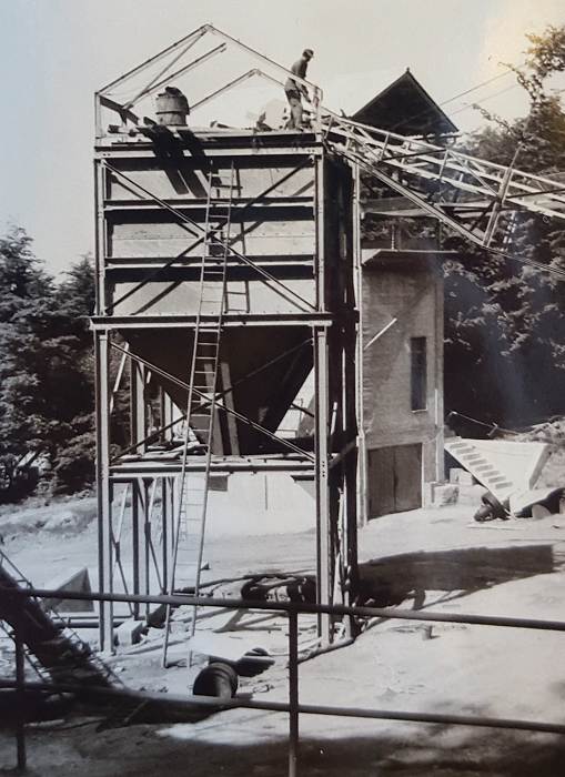 Später kam eine Bitumen-Asphalt-Mischanlage hinzu. Vom oberhalb des Werksgeländes gelegenen Steinbruch wurde das Material von einer Brecher-Anlage über ein Förderband und eine Siebanlage in verschiedenen Körnungen zu den verschiedenen Bunkern beleitet und vorübergehend eingelagert. Das unterschiedliche Material wurde auf LKW verladen und über eine große Waage abtransportiert. Also: alles in allem entstand aus kleinen Anfängen doch eine große Anlage.