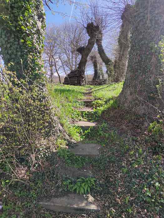 Zwei kleine Alleen ziehen sich durch den Wald am nördlichen Ende des Süntels. Wer sie nicht kennt würde glatt an ihnen vorbei gehen. Nur ein paar Stufen führen von der viele befahrenen Landstraße nahe dem Gut Nienfeld einen Hang hinauf. Dann beginnt der urige Weg unter noch uriger geschnittenen Bäumen und setzt sich einige hundert Meter weiter in einer etwas kleineren Allee fort. Es sind geschnittene Hainbuchen. Etwas alle acht Jahre macht sich der Besitzer die aufwändige Mühe die aus einer Art Kopf wachsenden Äste zu beseitigen. [..]