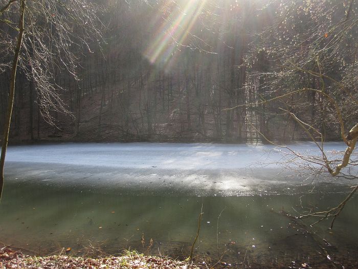 28.02. / 10 Grad / Der Süntelsee ist noch mit einer Eisschicht bedeckt!