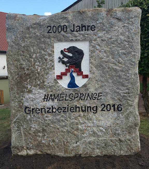 Hamelspringe hat im Zuge einer Grenzbeziehung am 03.09.2016 einen von der Steinbildhauerei Graf (Lauenau) gestalteten Gedenkstein eingeweiht.