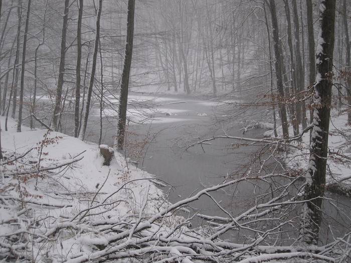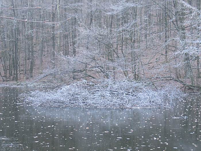 Der Süntelsee ist mit einer Eisschicht bedeckt, die aber sicherlich niemanden tragen kann!