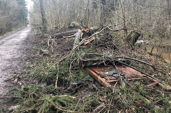Am Eingang zum Steinbachtal in Klein Süntel ist eine große Infotafel Opfer des Sturms FRIEDERIKE geworden.