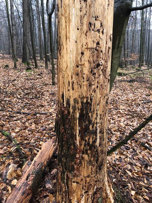Am Rehbuschweg hat der Borkenkäfer ordentlich gearbeitet. Da ist sogar die Kennzeichnung 'K' verschwunden.
